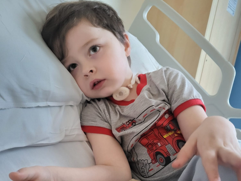 Riley was born with a collapsed windpipe. When he was a baby, he would turn blue and his mum and dad, Amy and Luke, would rush him into hospital. When they finally got an answer, this began a nine month hospital stay for Riley.